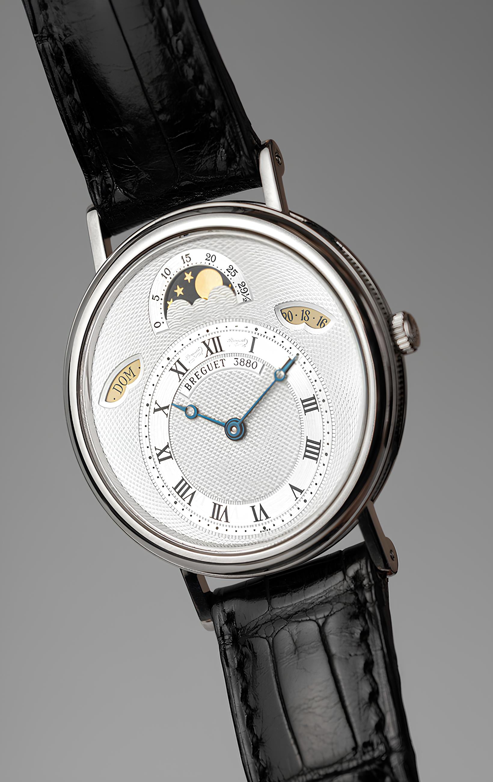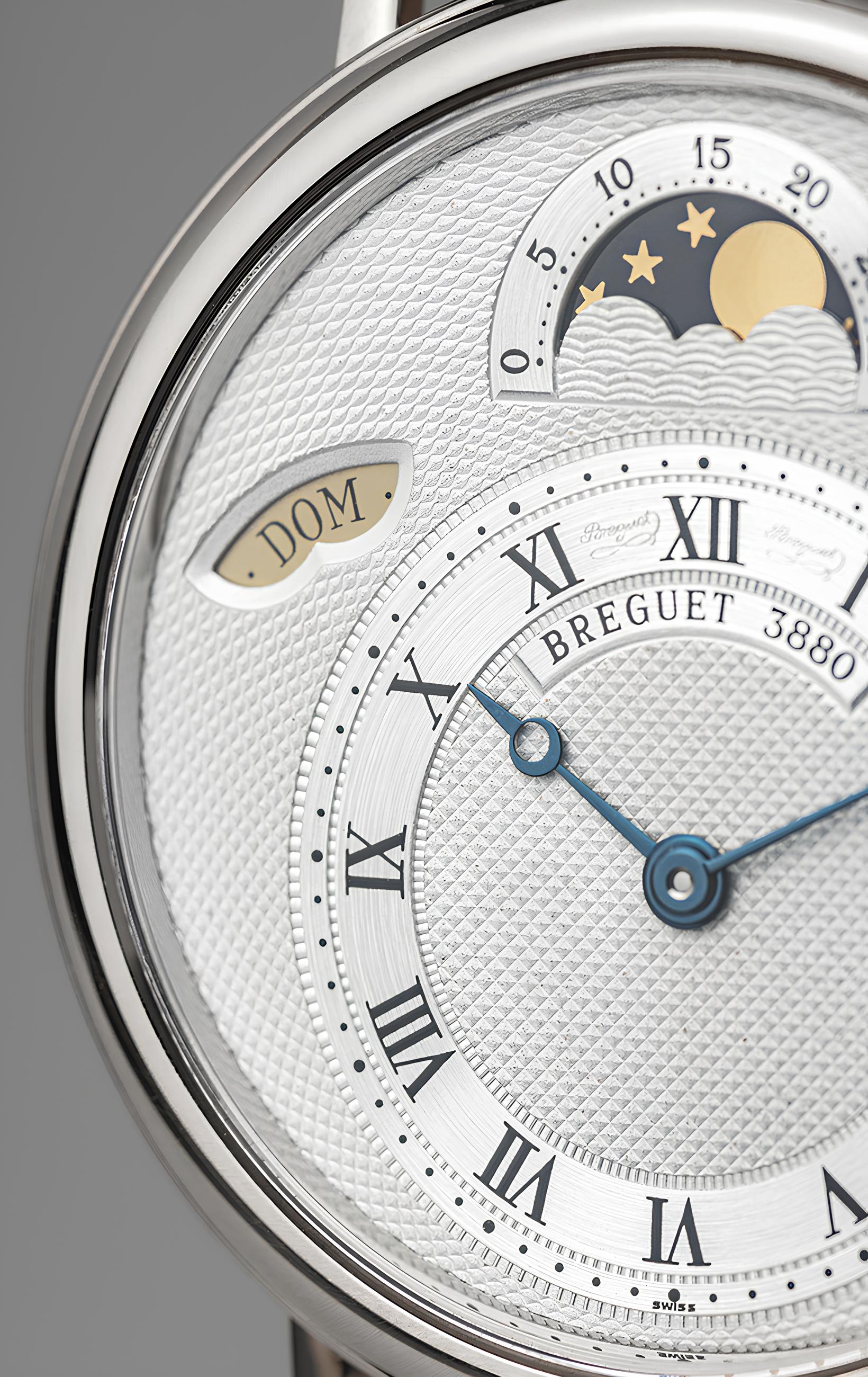 Few brands can match the extraordinary mechanical innovations and iconic design of Breguet. The Classique Day-Date Moon ref. 3337 encapsulates the very essence of what Breguet represents in the world of modern watchmaking. This masterpiece of classic design features a 36mm round case and a domed bezel, adorned with an elegant coin-edge motif, exuding sophistication and timeless appeal. Its slim profile, measuring just 7.3mm, fits perfectly on the wrist, blending elegance with tradition.