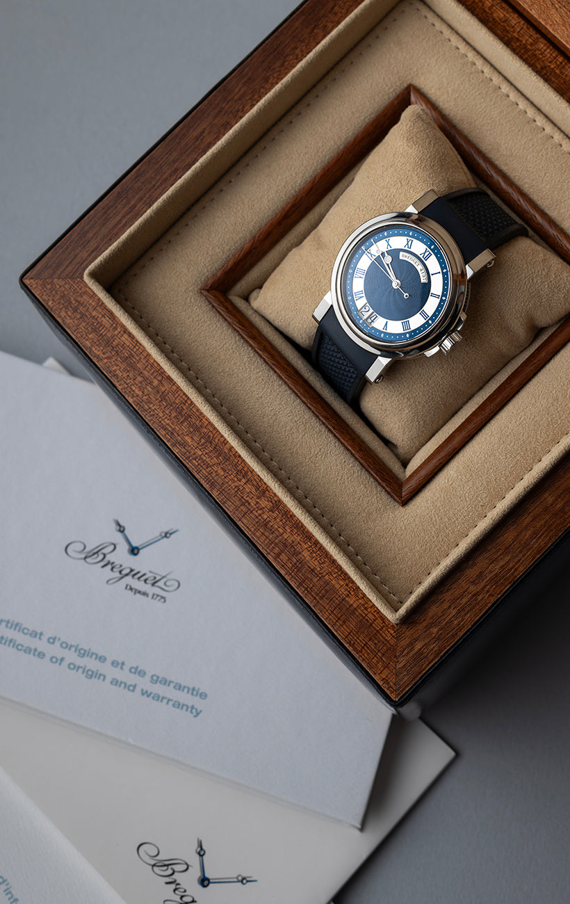 This particular model, part of the Marine collection, seamlessly merges refinement with sportiness. It masterfully combines Breguet's rich watchmaking traditions with a contemporary, dynamic design, making it the ideal choice for those who value both style and functionality.