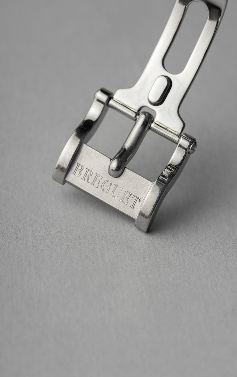 The watch comes with a textured navy blue rubber strap, as well as an additional black strap, both equipped with a signed stainless steel folding clasp. Powered by the Breguet Calibre 517GG automatic movement, visible through the sapphire crystal caseback, this piece reflects the brand’s commitment to technical excellence.
