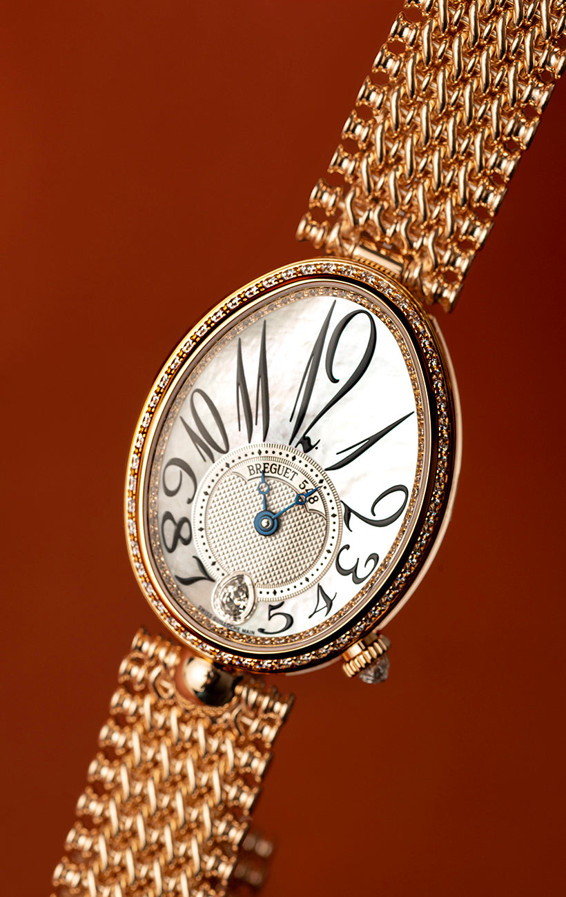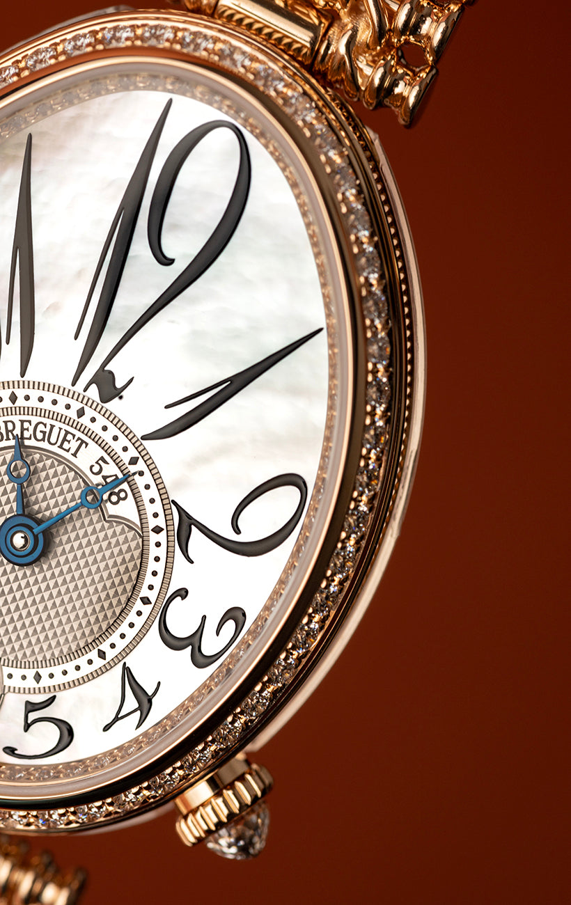 The Breguet "Reine de Naples" collection was born from the historic collaboration between the famous watchmaker Abraham-Louis Breguet and Caroline Murat, Queen of Naples from 1808 to 1815. A passionate collector of Breguet watches, Caroline owned over thirty examples, including a unique model with an oval case, repeating mechanism and thermometer. This watch inspired the creation of the Reine de Naples line in 2002.