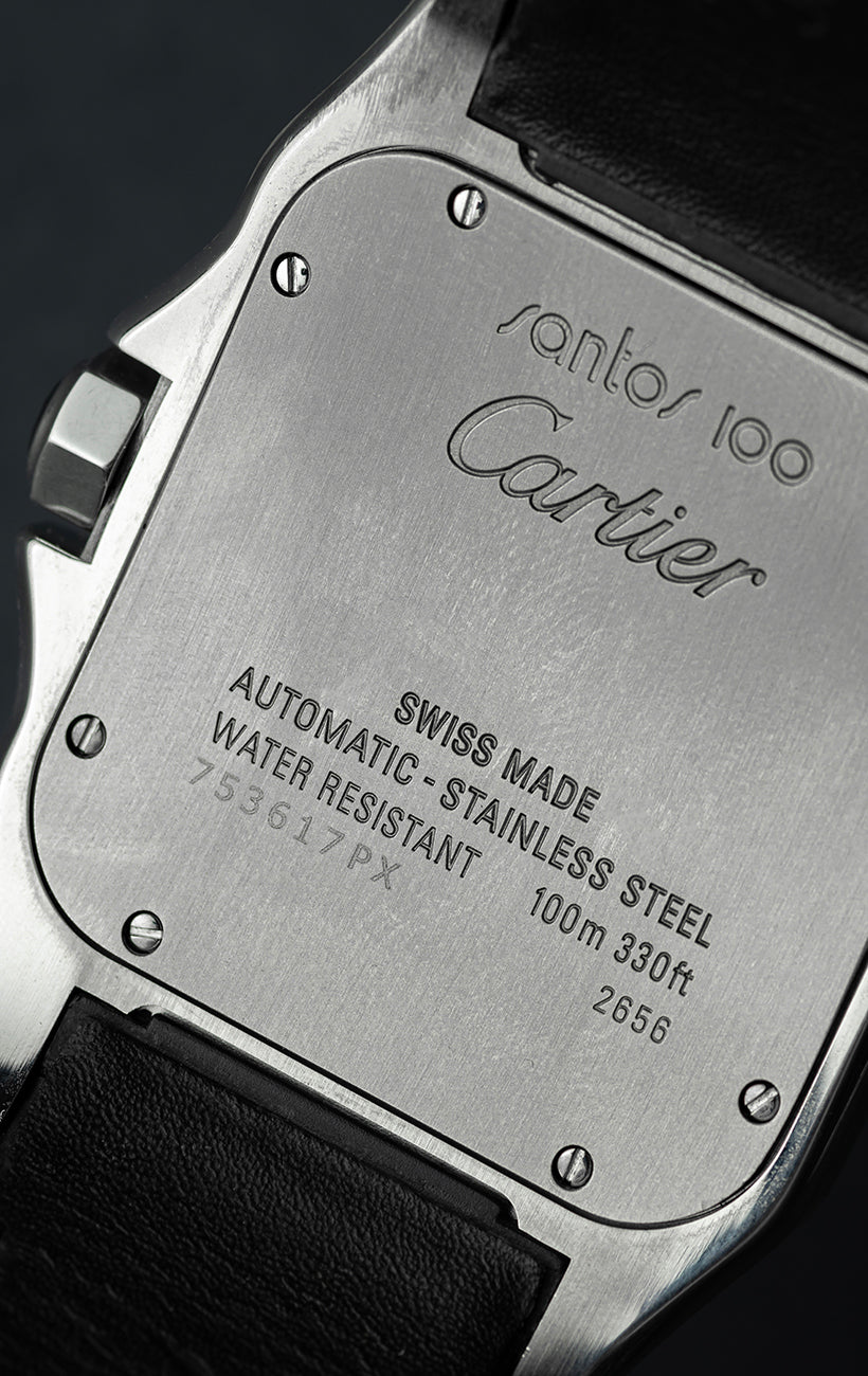 This particular model, the Reference 2656, dates back to the 2010s and embodies contemporary elegance. It features a 38 mm stainless steel case with a polished bezel, sapphire crystal and Cartier’s signature sapphire cabochon crown. The satin-brushed silver dial features classic printed Roman numerals, complemented by black sword-shaped hands with luminescent coating, combining style and functionality.