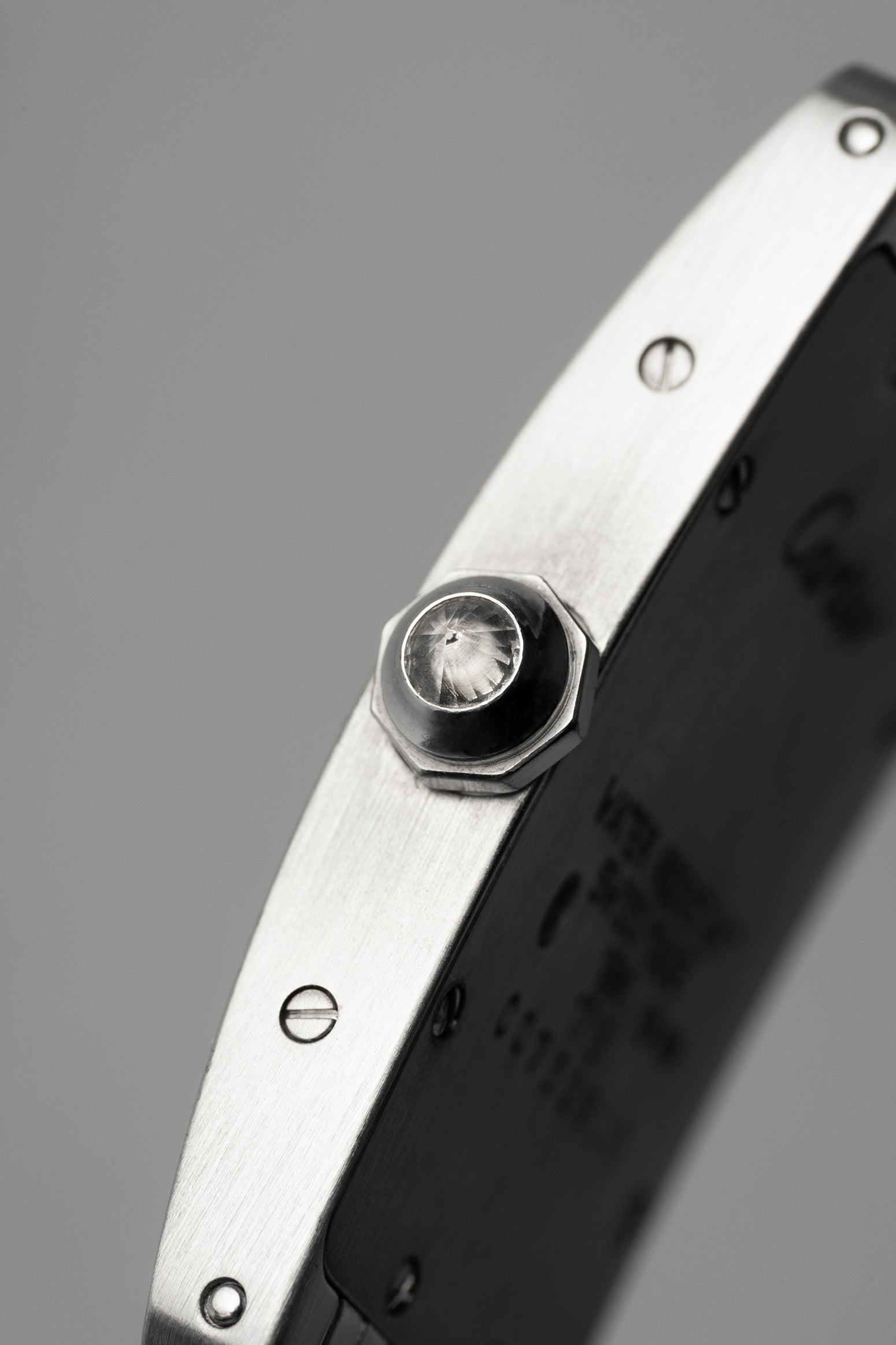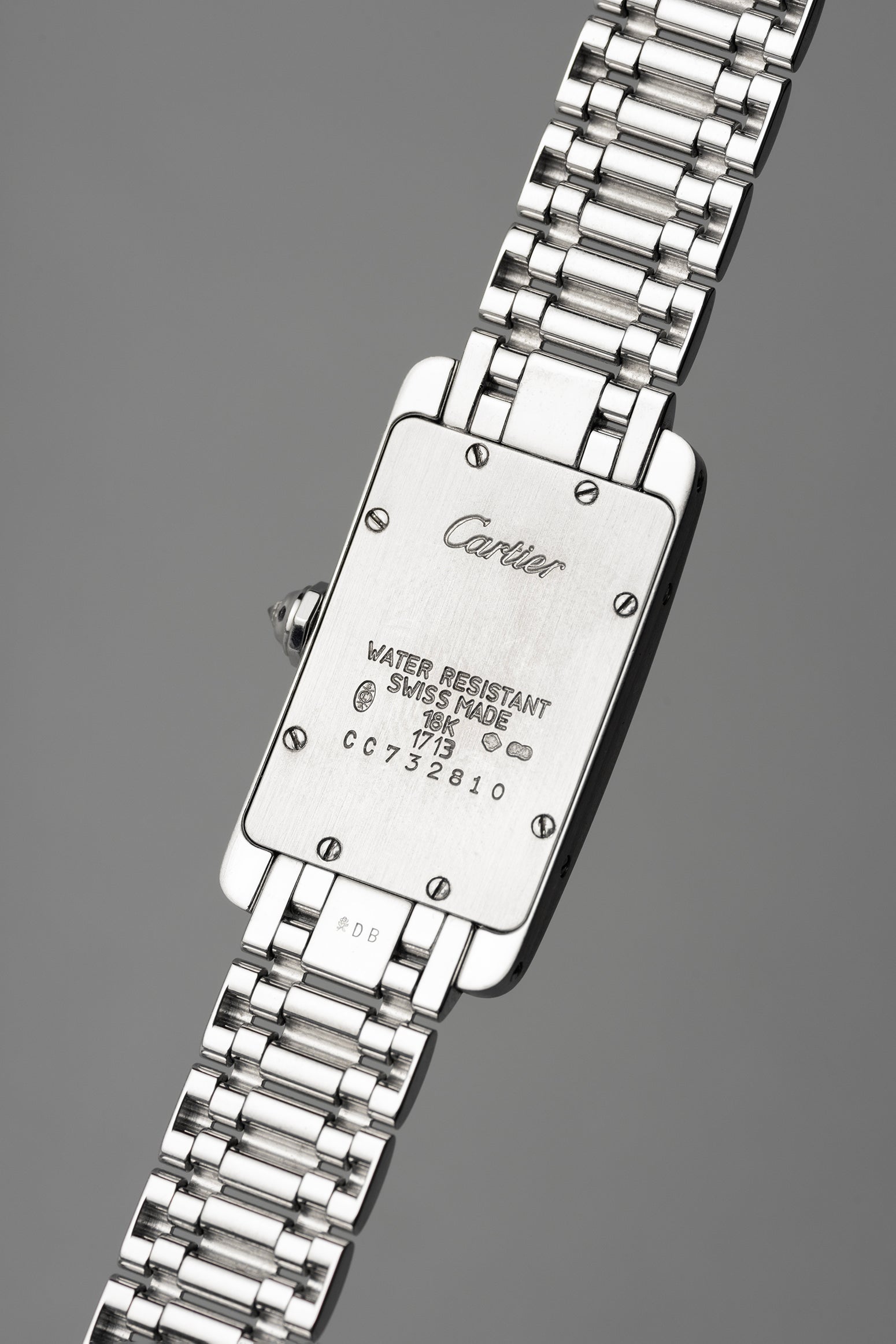 The timeless elegance of the Cartier Tank Américaine 1713 in white gold and diamonds perfectly embodies refinement and prestige. Inspired by the iconic design of the Cartier Tank, created in 1917 and influenced by the robust lines of Renault tanks from the First World War, this model represents the evolution of the brand's distinctive style. The elongated and subtly curved case fits harmoniously on the wrist, offering a perfect balance between modernity and tradition.