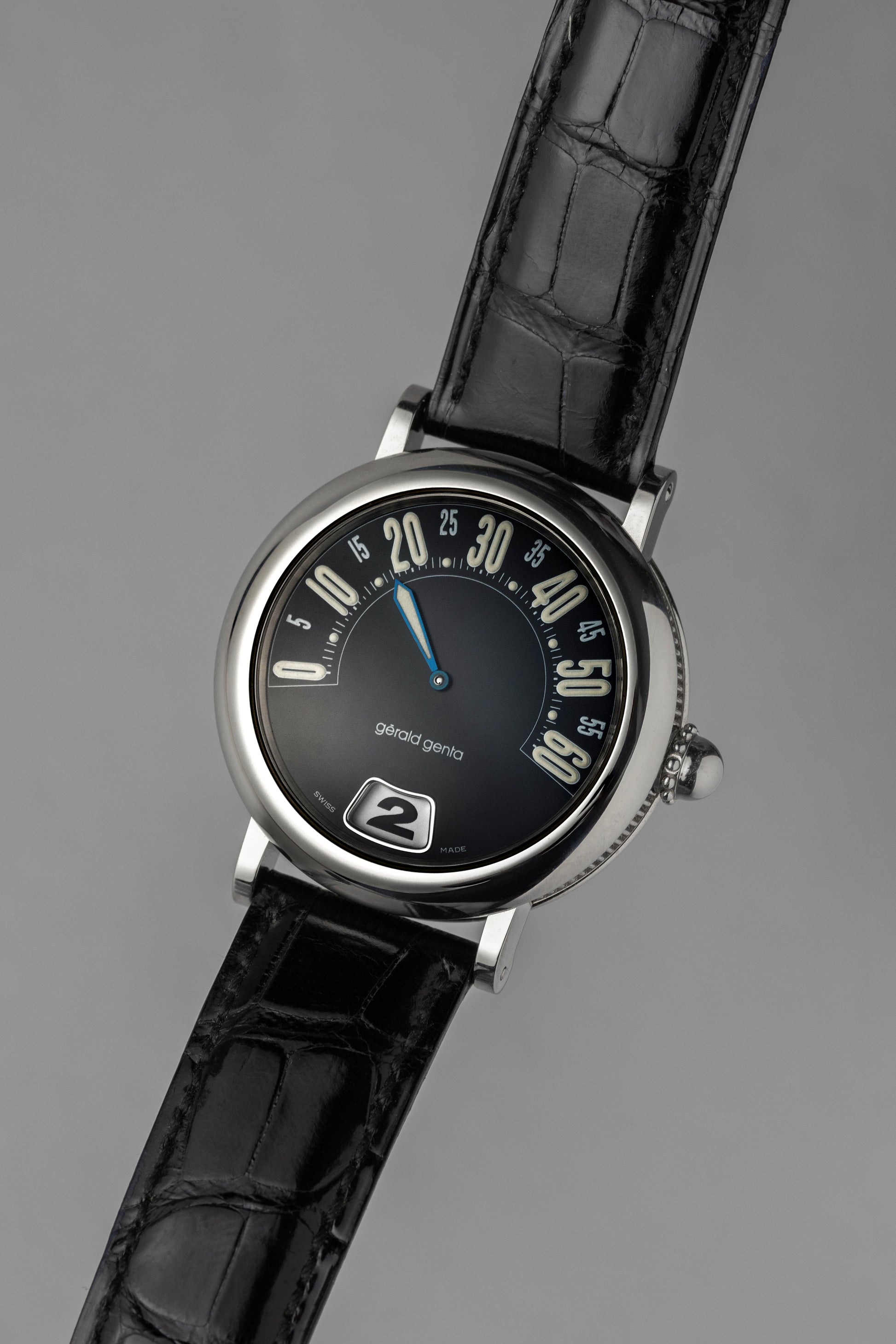 With his maison, Genta gave full expression to his distinctive style, experimenting with innovative technical solutions and original complications. Among his most recognizable stylistic signatures are retrograde indications, jumping hours, off-center dials and an aesthetic approach inspired by Art Deco and modern architecture. Each watch was conceived as a mechanical sculpture, capable of combining art, technique and originality.