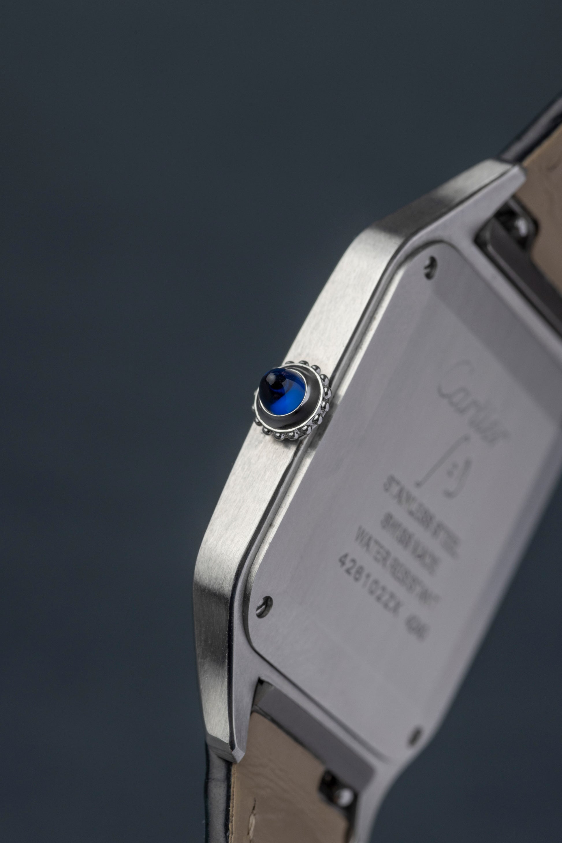 Il Santos-Dumont WSSA0022 è animato dal calibro automatico Cartier 430 MC, un movimento sottile e affidabile basato su architettura Piaget, scelto per mantenere il profilo elegante della cassa. La riserva di carica e la fluidità di funzionamento lo rendono ideale per un utilizzo quotidiano, coerente con la filosofia del modello. L’impermeabilità è limitata a 30 metri, a conferma della sua natura di orologio classico da polso piuttosto che strumento sportivo.