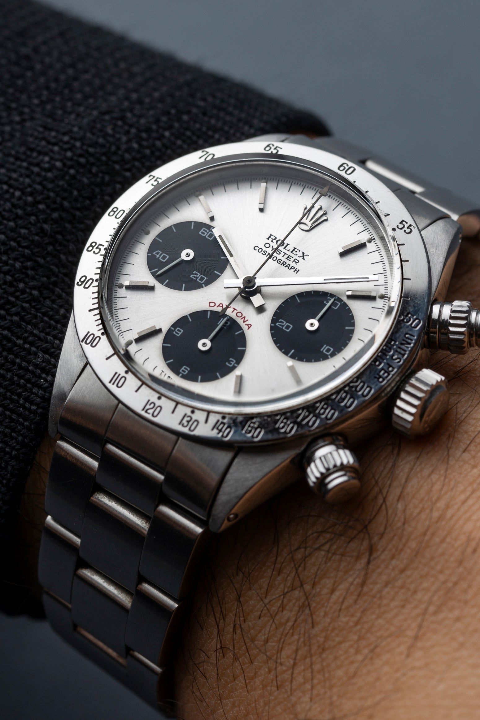 Nel corso degli anni Settanta, il Daytona raggiunse la sua forma più matura con le referenze 6263 e 6265. Questi modelli, dotati di pulsanti cronografici a vite e movimenti Valjoux di ultima generazione, rappresentavano l’incontro tra la tradizione artigianale di Rolex e la crescente esigenza di precisione meccanica del mondo sportivo. Il 6265, in particolare, con la sua lunetta metallica e il carattere sobrio, divenne una delle espressioni più pure dell’identità tecnica ed estetica della Maison.