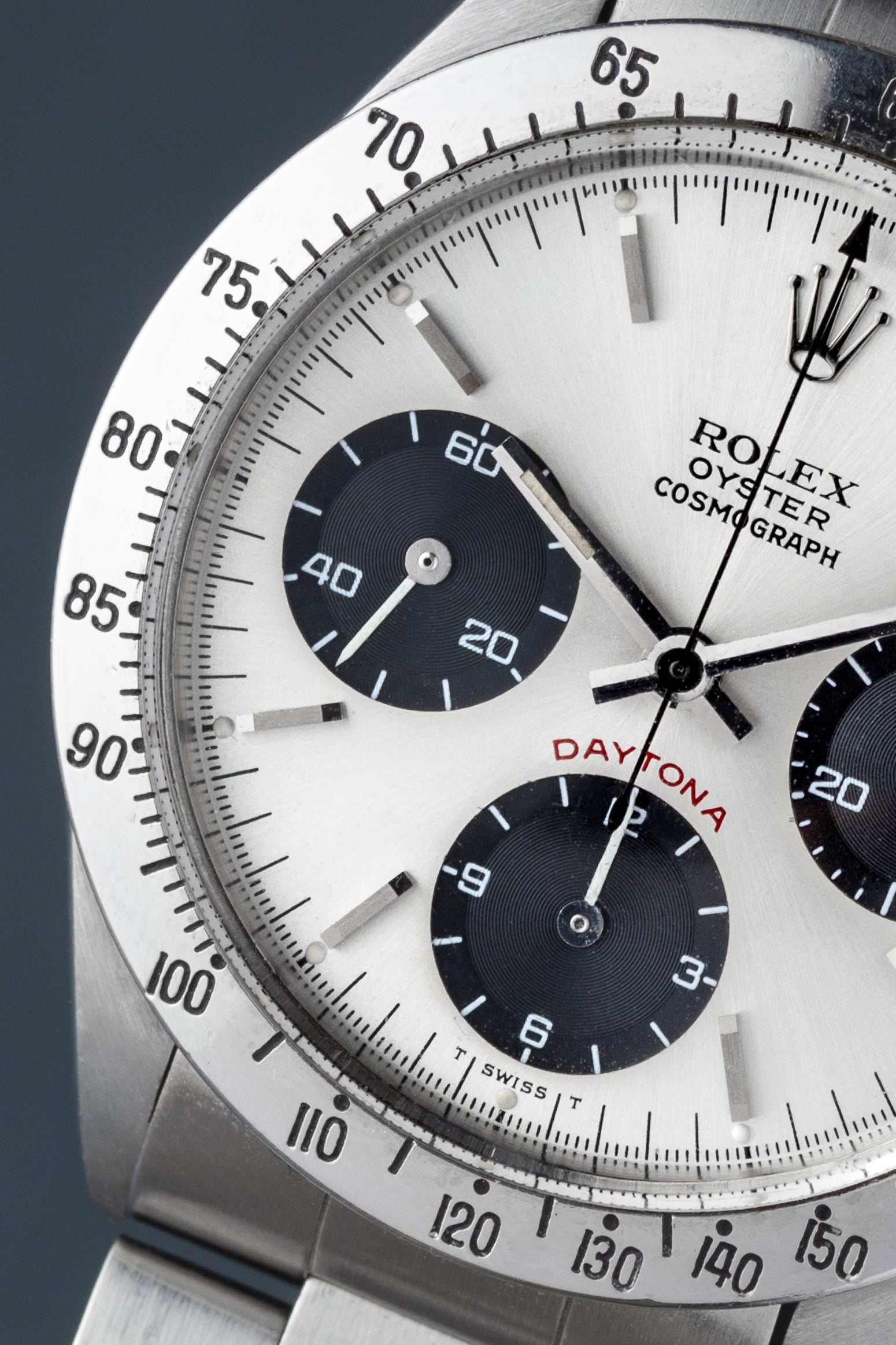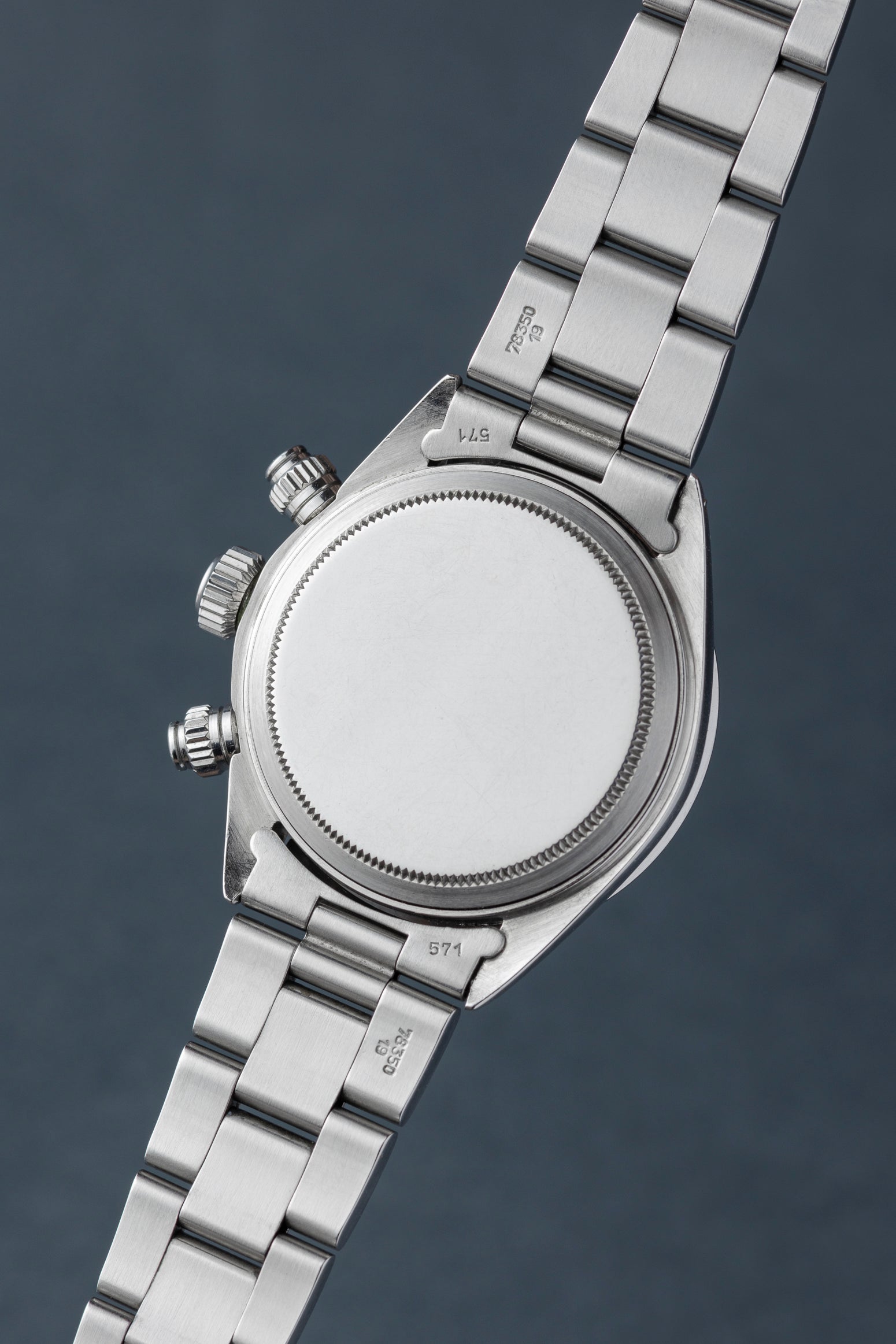 Il quadrante appartiene alla variante nota come “Small Red”, in cui la scritta Daytona, in rosso e di dimensioni contenute, si trova sopra il contatore delle ore a ore 6. Questa configurazione, tipica delle serie di transizione della fine degli anni Settanta, si distingue per l’armonia del disegno e per l’eleganza sobria delle superfici opache e della tipografia sottile, perfettamente in linea con il linguaggio estetico Rolex di quel periodo.