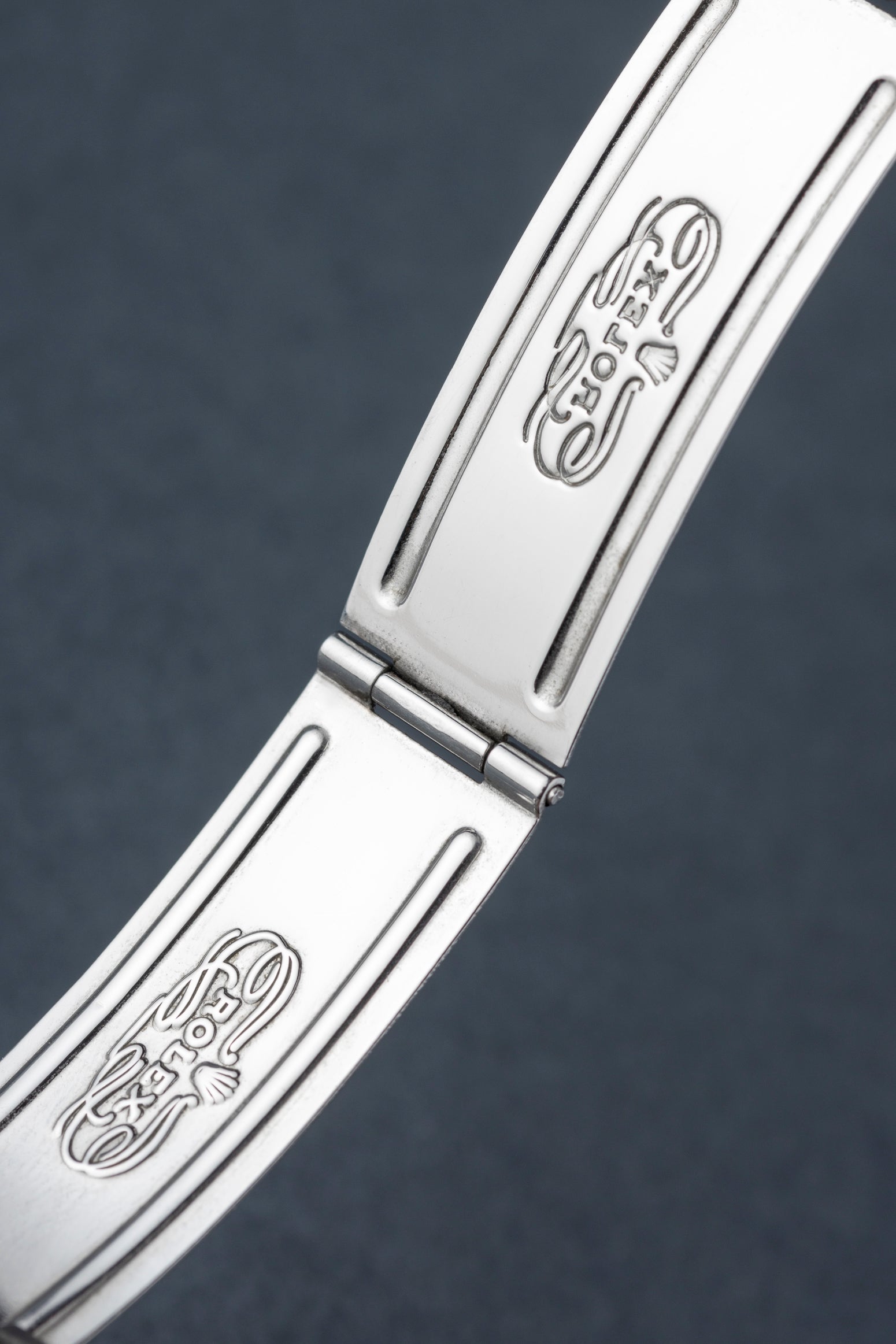 L’esemplare è accompagnato dalla scatola originale e dal tag, mentre la garanzia non è più presente. Il bracciale Oyster in acciaio, referenza 78350/19 con finali 571 e chiusura pieghevole corretta per il periodo, completa l’orologio con coerenza e proporzione.